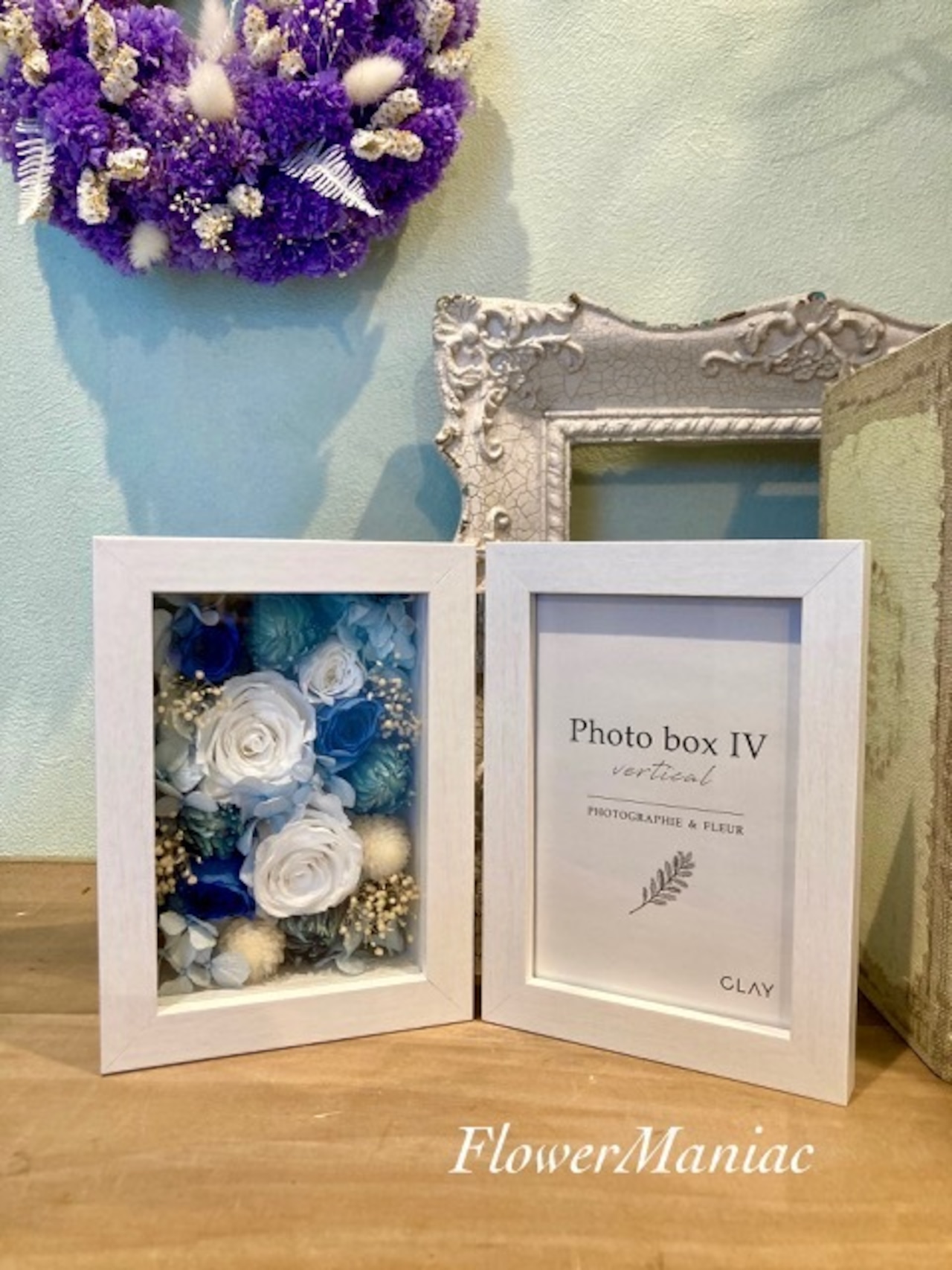 シンプルなフレームにプリザーブドフラワーを敷き詰めました