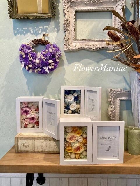 シンプルなフレームにプリザーブドフラワーを敷き詰めました